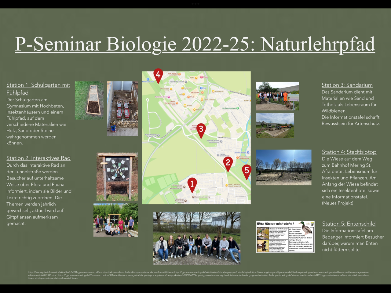 Wir sind das P-Seminar „Naturlehrpfad“ vom Gymnasium Mering und stellen hier unseren kleinen Beitrag zu der Vermittlung von Naturverbundenheit an die nächste Generation vor.